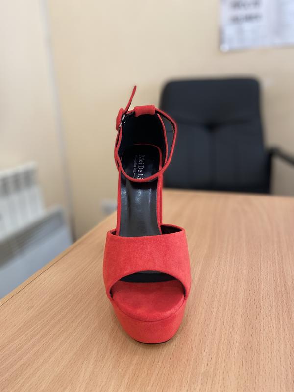 Босоножки на устойчивом каблуке (13 см), размер 38 в красном цвете, выполненные из экозамши. Продаю потому что не подойти размер, НОВЫЕ