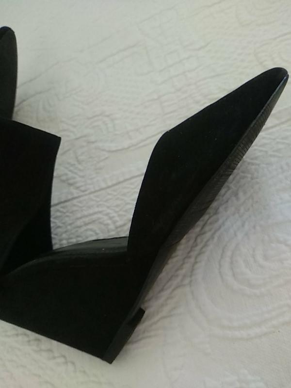 бу, в хорошем состоянии, чувствуется недостаток на носке, стельки 25см, танкетке 9,5см.замш искусственный.