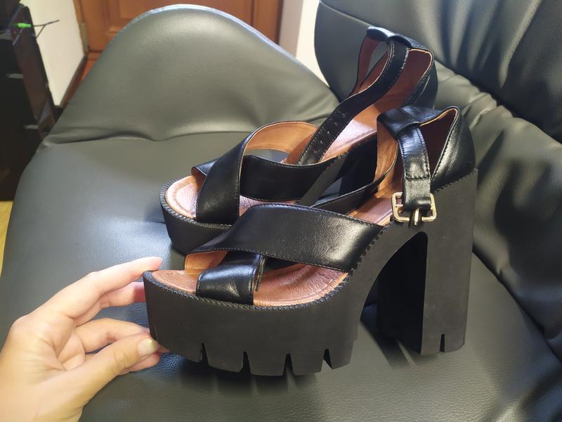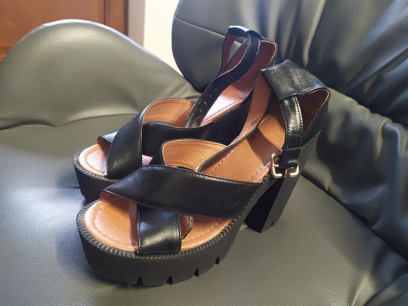 Кожаные босоножки, стелька кожа, середина и верх кожа. 25,5 см длина стельки. сзади каблук 12,5 см, спереди танкетка 4 см. Ходить удобно. Лежат без дела. Возможен торг.