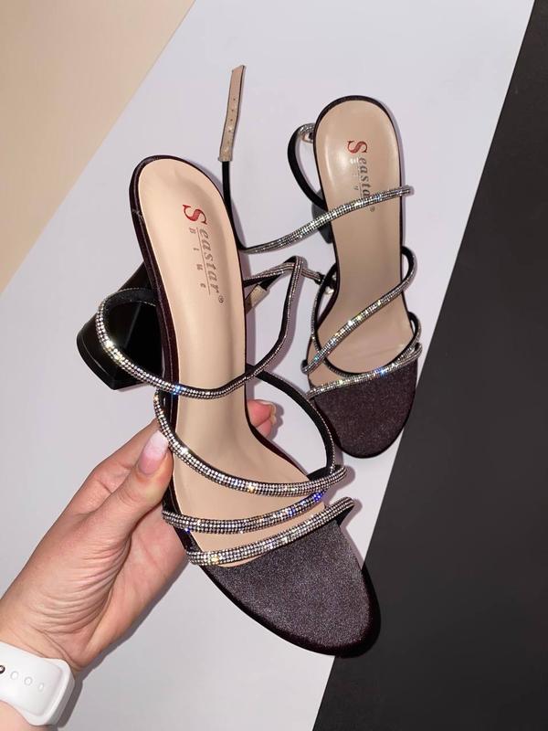 Стильные босоножки атласные босоножки босоножки на каблуке босоножки со стразами стразы