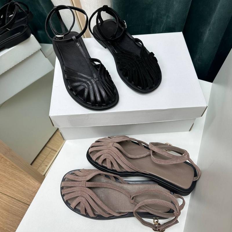 Босоножки из натуральной итальянской кожи и замши женские на низком ходу