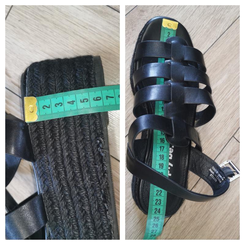 Босоножки в очень хорошем состоянии. Натуральная кожа снаружи и стелька. Очень мягкие. Подойдут на широкую ногу. Обуты максимум один раз, видны по подошве. Нюанс на боку подошвы, слегка торчат ниточки.