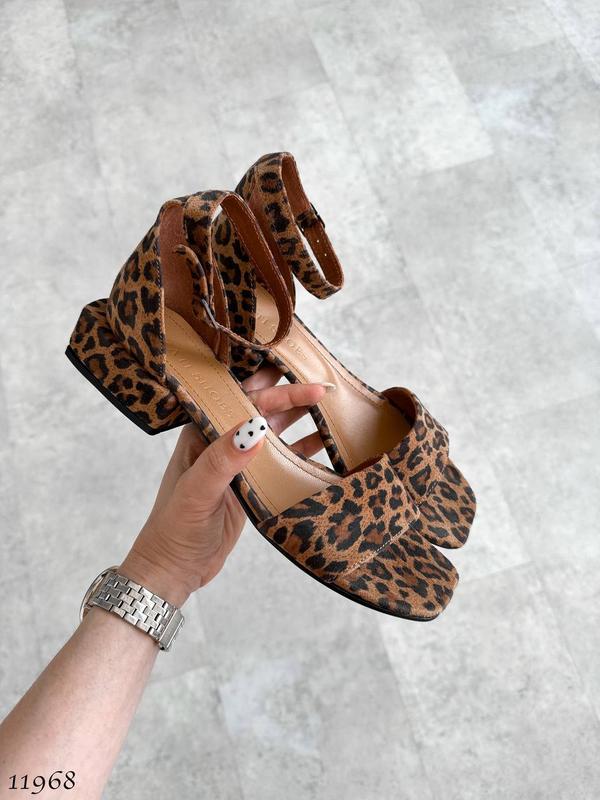 Код 11968 Трендовые босоножки принт: ЛЕО НАТУРАЛЬНЫЙ ВЕЛЮР (Шевро) Стелька: натуральная Подклад: натуральный лицевой высота каблука - 3 см Производство - Украина Цвет стельки в каждой партии может отличаться 35= 22,5 см 36= 23 см 37= 24 см 38= 24,3 см 39= 25 см 40= 25,5 см 41= 26 см