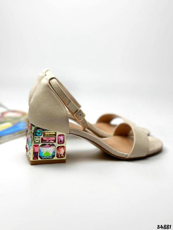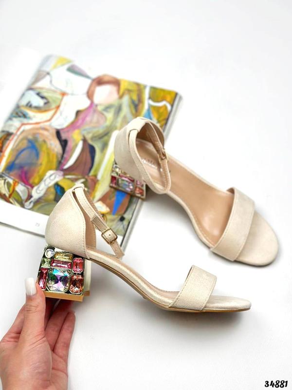 Босоножки на эффектном каблуке Цвет: бежевый Материал: эко замша Сезонность: летоКод товару: 34881▪️Высота каблука: 5,5смРазмерная сетка:36-23,5; 37-24; 38-24,5; 39-25;40-26см.