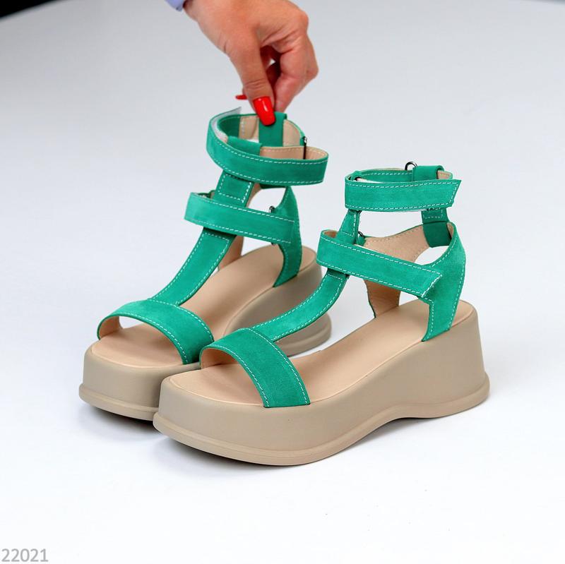 Код 22021Материал - НАТУР. ЗАМШАСтелька - НАТУР. КОЖИРАЦвет - ЗеленыйПодошва - 6,5см/4смПроизводитель - УкраинаЛипучки впереди регулируютсяЗамеры прописаны по результатам примерки на стопуНа среднюю стопуМаломерят38-2440-25