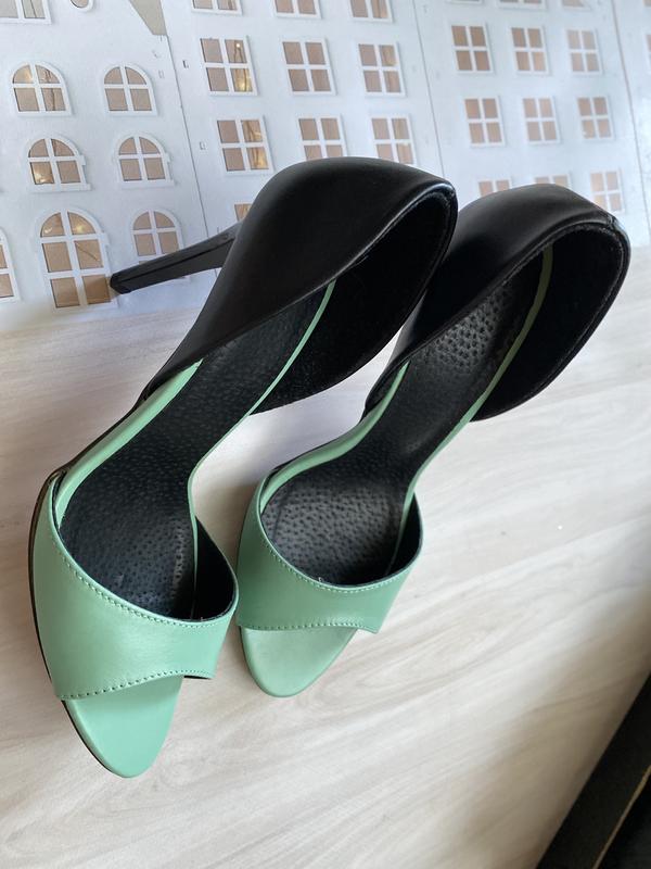 Продам новые босоножки на каблуке. Кожаные. Покупала для себя в прошлом году, но так и не пригодился их выгулять (несколько раз примерялись в квартире). Производство Украина, если верить производителю - полностью кожаные. Высота каблука 9-9,5 см. Длина стельки от края до края - 24,5 см. Цвет - мятно-черные. Очень красиво смотрятся на ножке. Есть небольшой производственный дефект (фото добавкой). В Киеве, левый берег - возможна примерка.