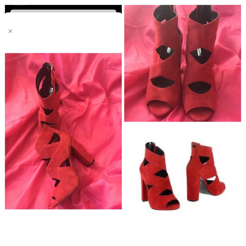 Кожаные красные босоножки на каблуке натуральная замша кожа