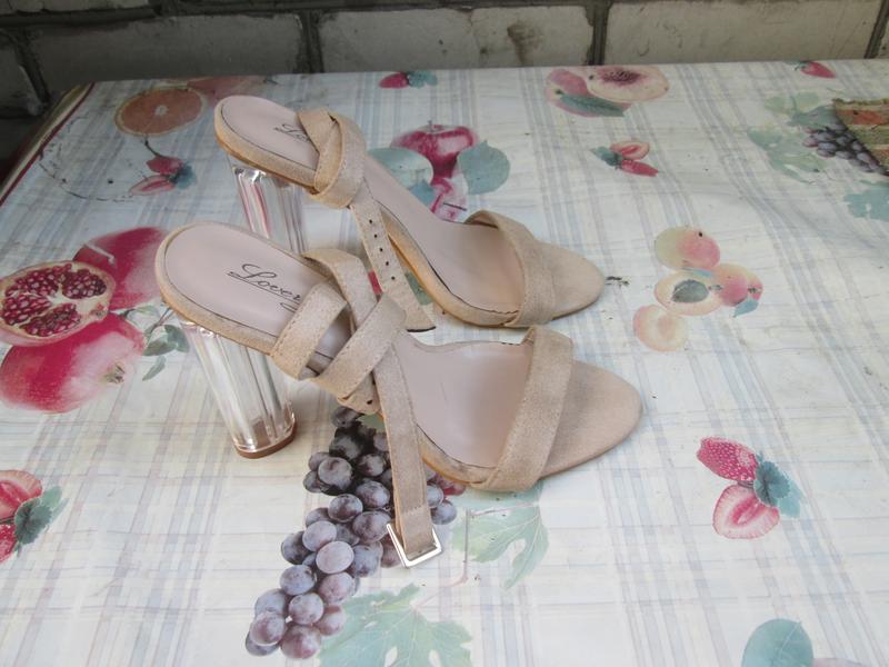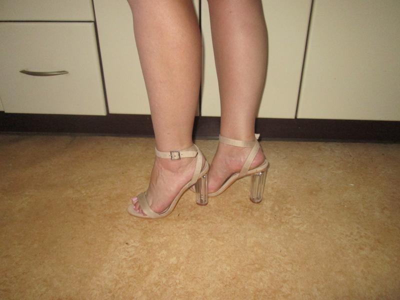 Бежевые босоножки на прозрачных каблуках.