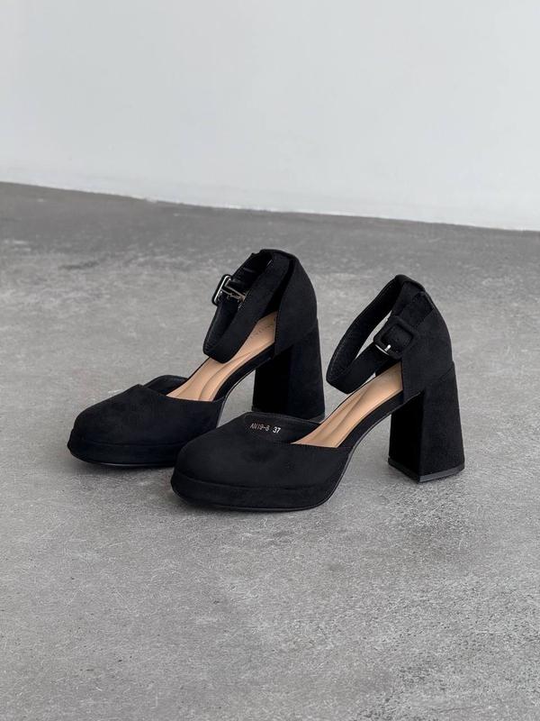 Код 11048Босоножки с закрытым носикомЦвет: ЧЕРНЫЙМатериал: экозамшаВнутри: кожподкладКаблук: 8,5 смПроизводство - КНР