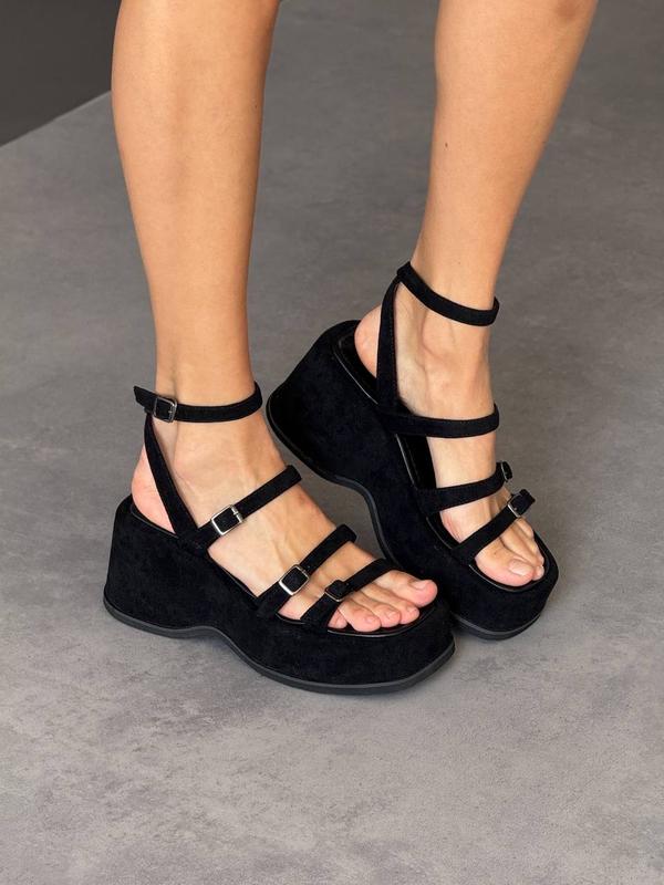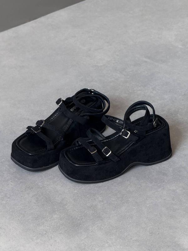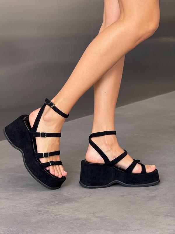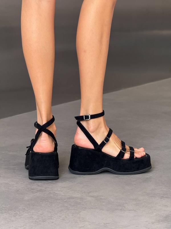 Код 11345Босоножки на танкеткеЦвет: ЧЕРНЫЙМатериал: экозамшаСтелька: кожподкладПлатформа: 4 см/ позаду 8 смОбъем регулируется
