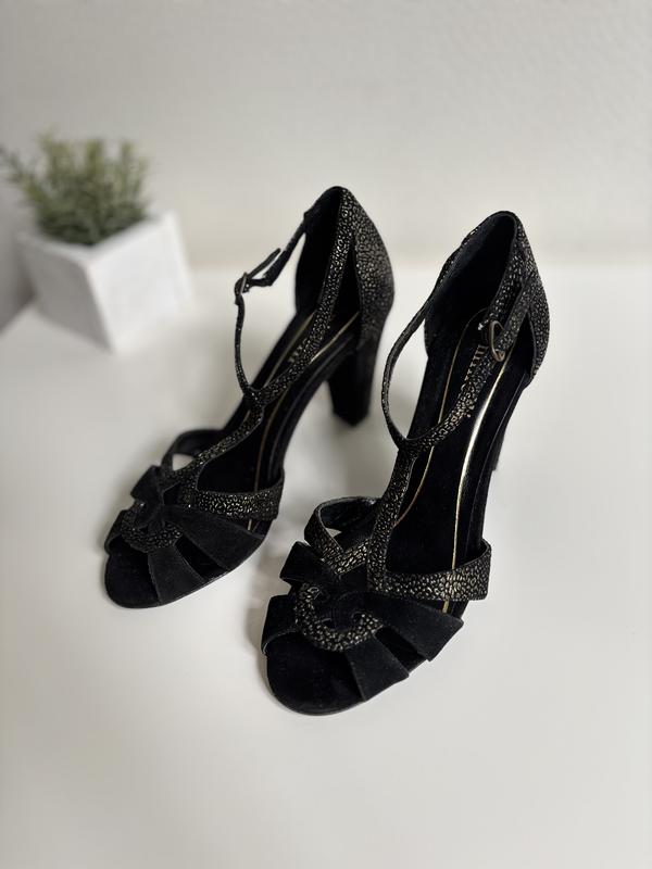 Чёрная замша + золото босоножки с острым носком