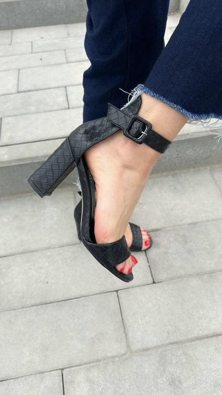 Босоніжки на стійких підборах з ремінцем жіночі чорні літо