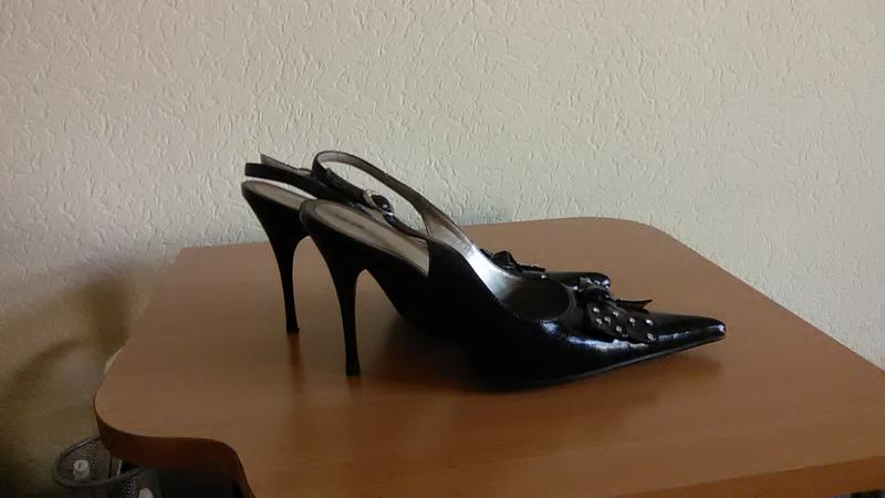Босоножки вечерние на шпильке. Италия.Кожа. Классика. Носок закрыт и украшен бантом со стразами. Идеально будут смотреться под вечерний наряд, но можно носить и повседневно. Высота каблука 10 см.