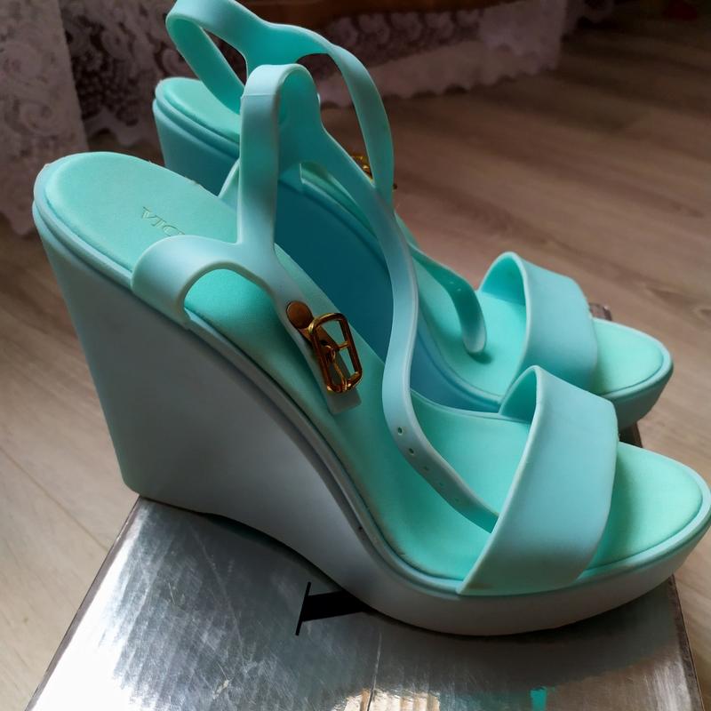 Босоножки на каблуке бирюзовые р.39/стильные босоножки