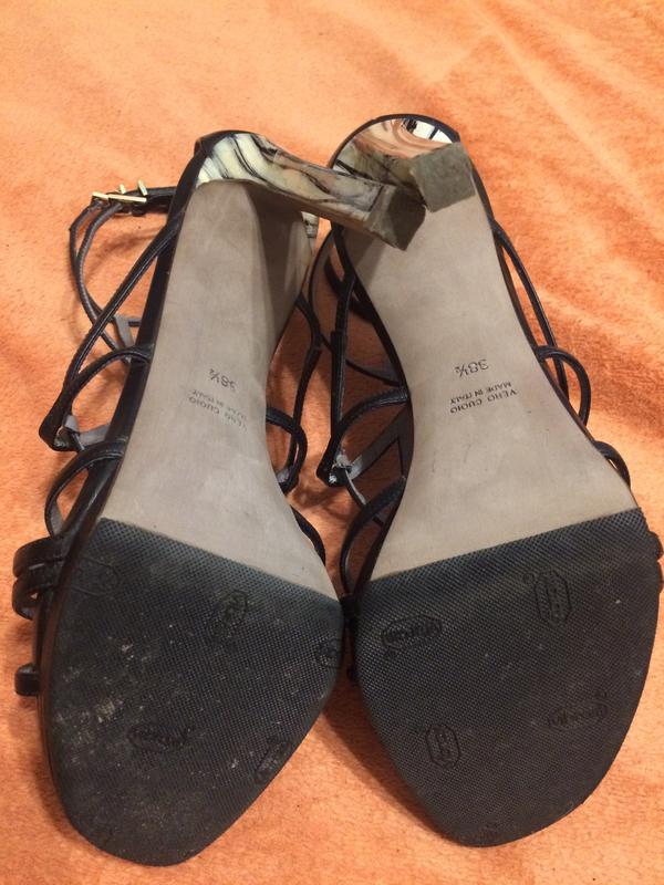 Размер указан 5.5/38.5 стелька ровно от края до края 25 см но подойдут и на 24.5 см широкая часть стопы 8.5 см полу обхват верха спереди до подошвы в широкой части 13 см каблук 12 см высота 22 см полу обхват ремешка максимум 11.5 см