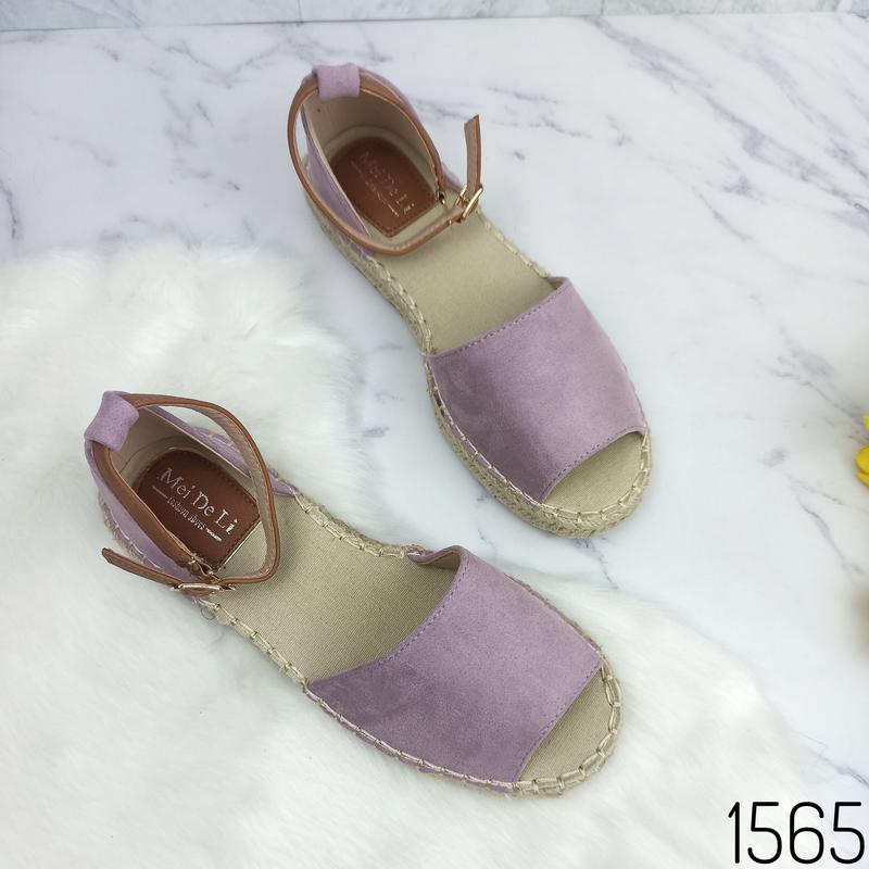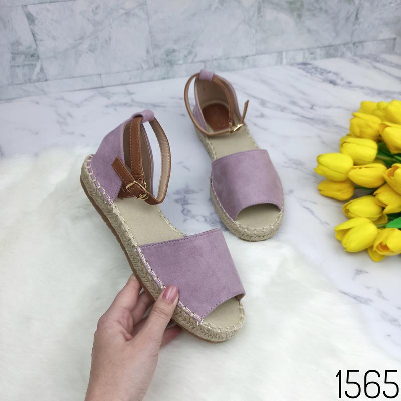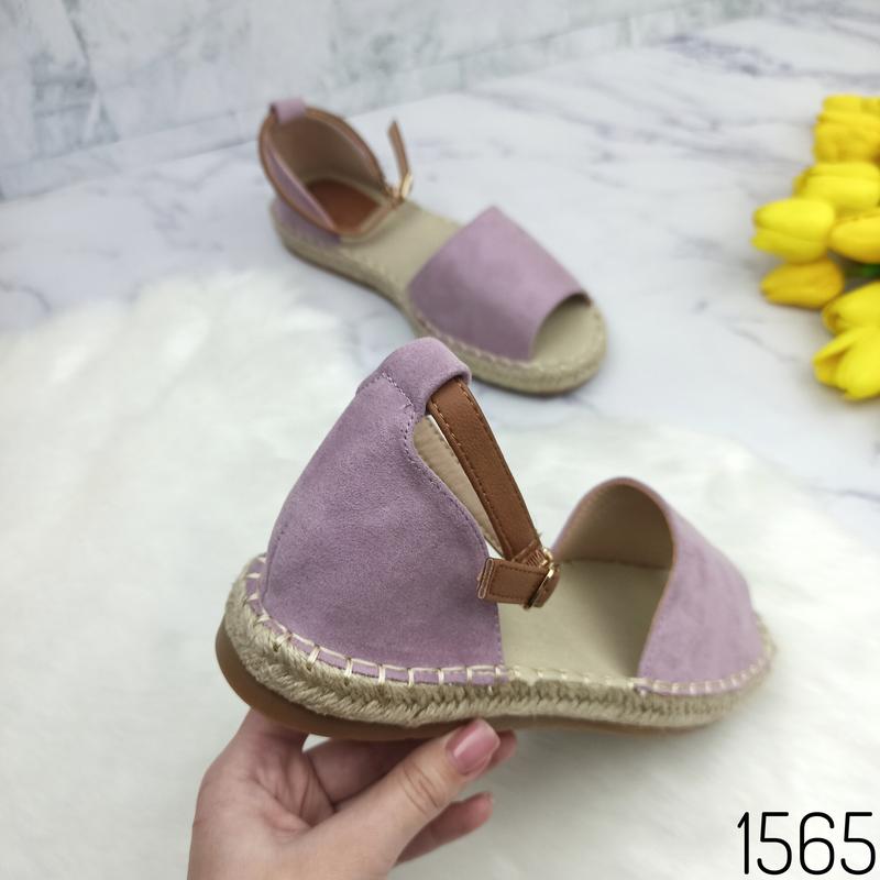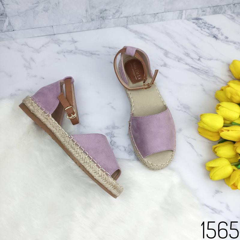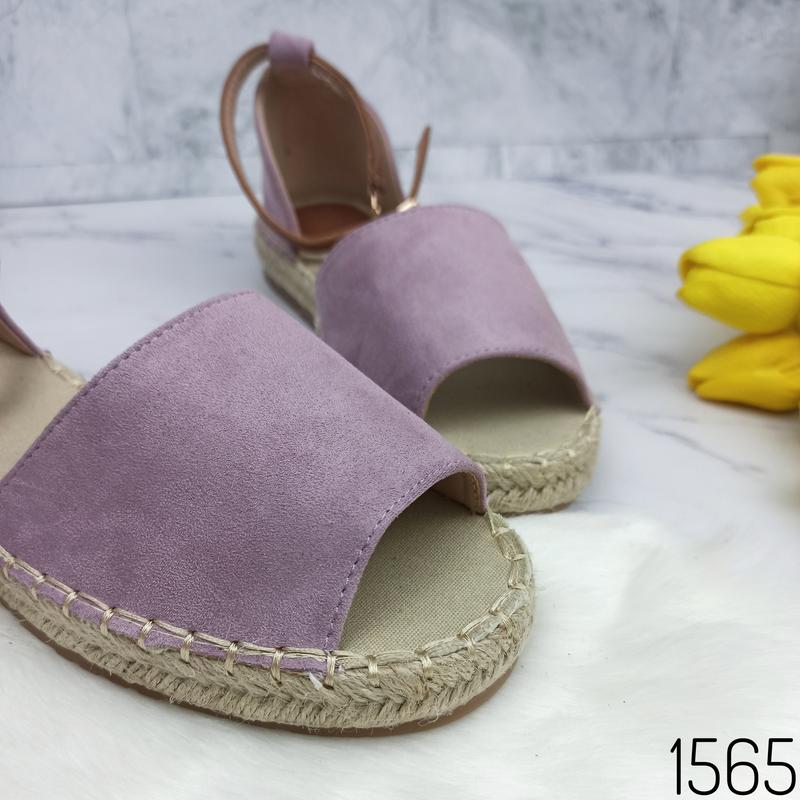 БосоніжкиМатеріал - ЕкозамшаКолір - ЛіловийПлетена підошва - 2см/3смШирина передньої лямки 7см