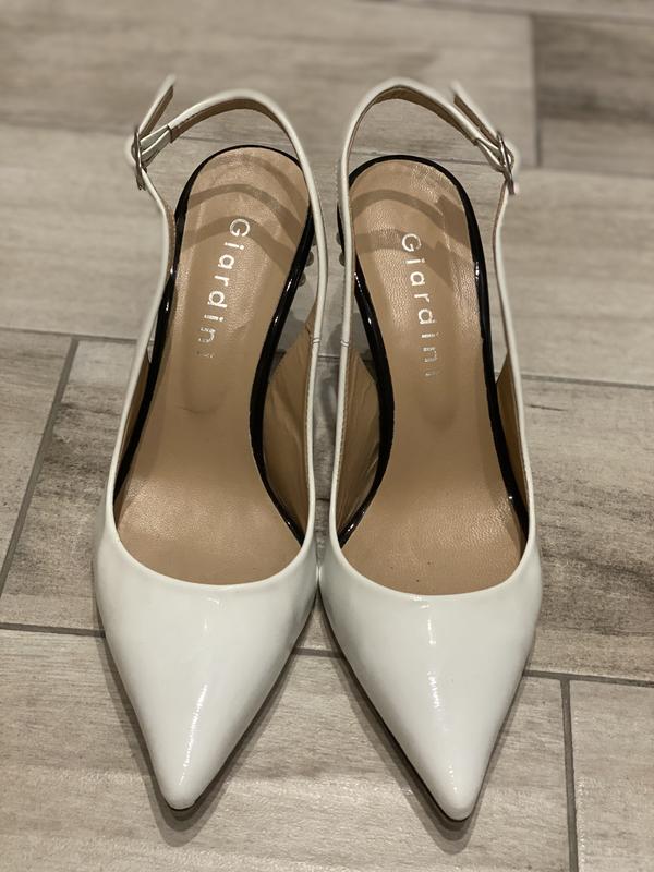 Слингбэки из натуральной кожи Giardini. Удобная колодка, каблук 7 см. Состояние идеальное, без царапин. Установлены профилактика и набойки. Обувались один раз. Размер 37 на узкую или среднюю ногу. Длина стопы 24-24.2 см.