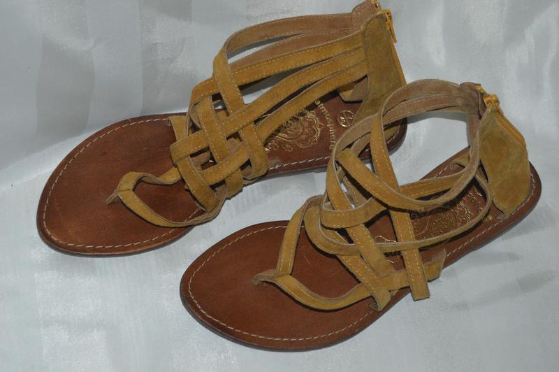 Босоніжки сандалі гладіатори Atmosphere.Нові. Верх - натуральний замш. Устілка - натуральна шкіра. Вживу колір дуже красивий, колір замшу, як правило важко передати на фото. Розмір 40/7. Довжина по устельці 26 см. Ширина 9,5 см.