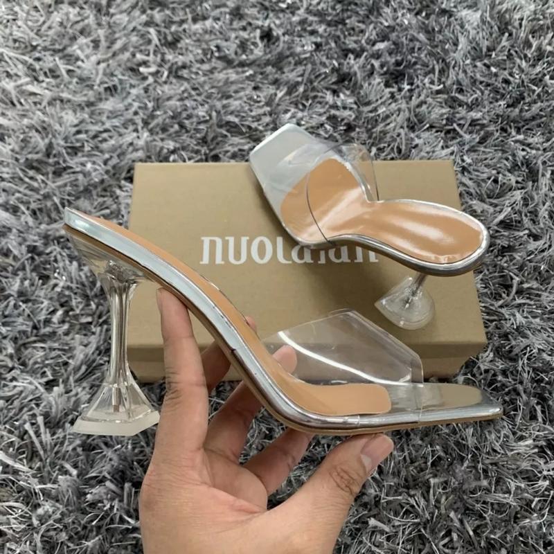 Бежевые с серебристым кожаные босоножки на низком каблуке