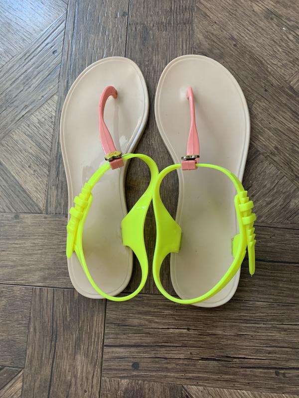 Резиновые босоножки, вьетнамки, шлепанцыжелтые с розовым Axel, размер 37/38 (24 см стелька), с коробкой
