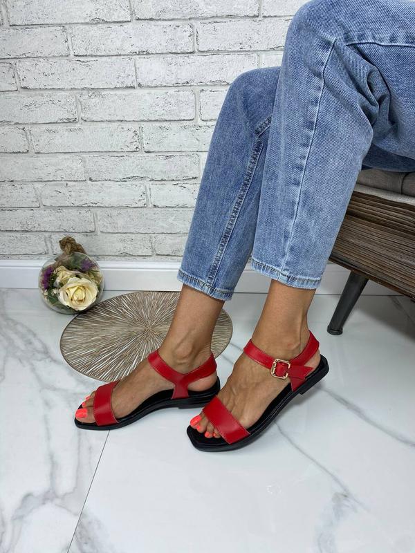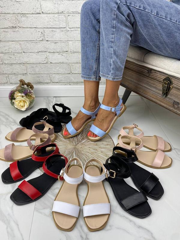 Женские кожаные босоножки без каблука. Большое разнообразие цветов