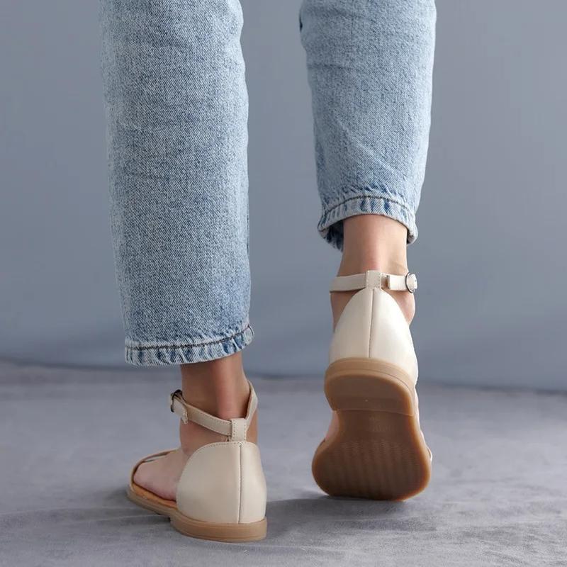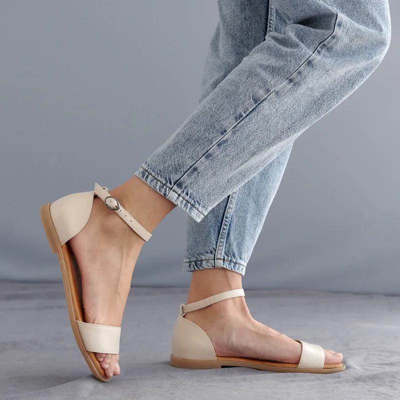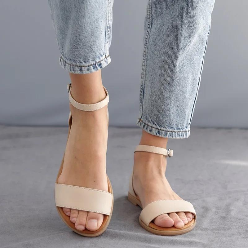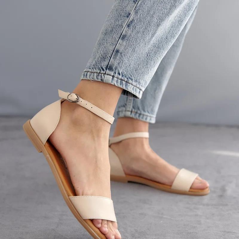 Женские босоножки на плоской подошве бежевые (молочные) - женская обувь на лето 2022