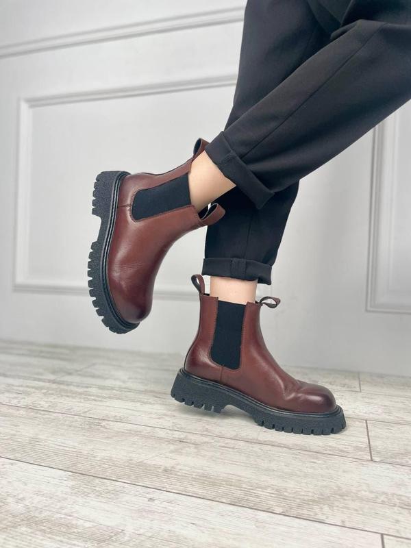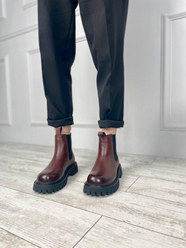 Ботинки женские кожаные на утолщенной подошве бордового цвета до 43размера