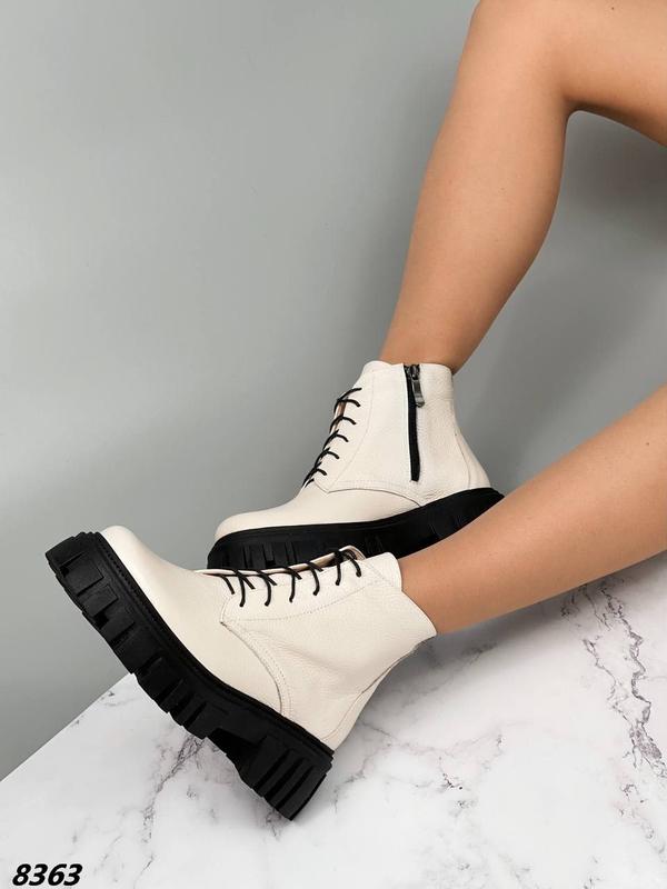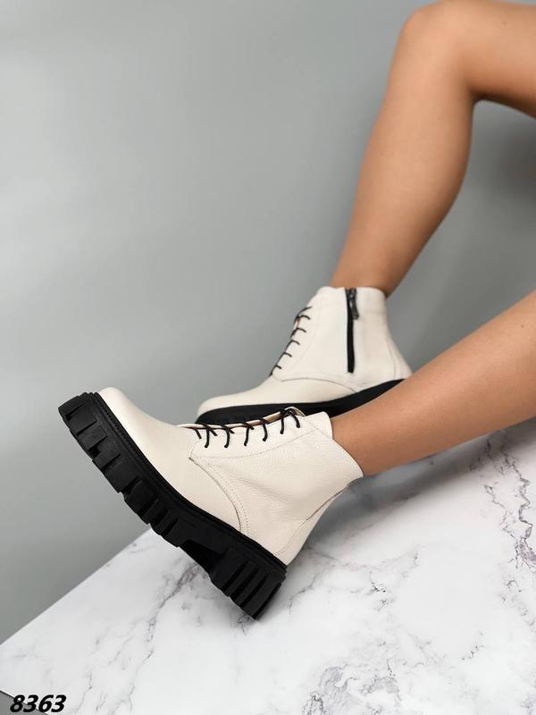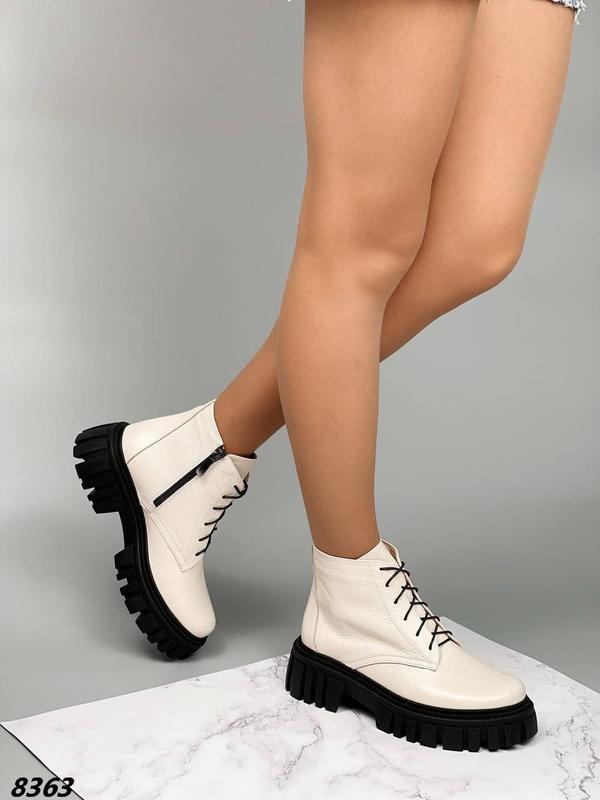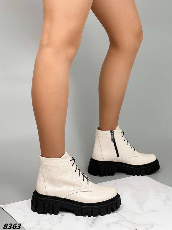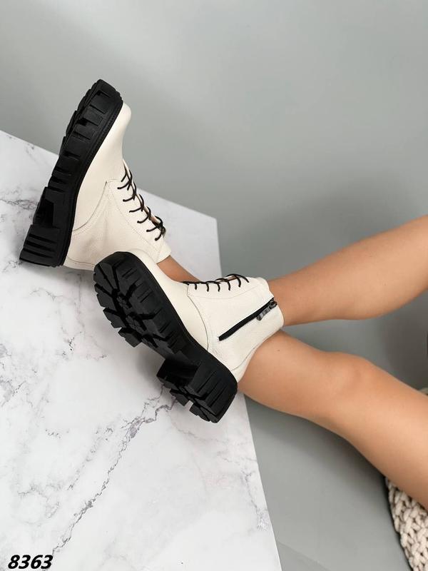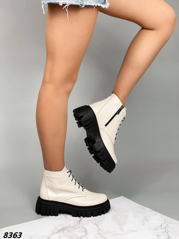 Черевики Сезон демі Матеріал натуральна шкіра Всередині байка Колір світлий беж Висота підошви 5,5 см Висота від п'яти 11 см На шнурівці + блискавка