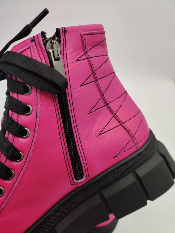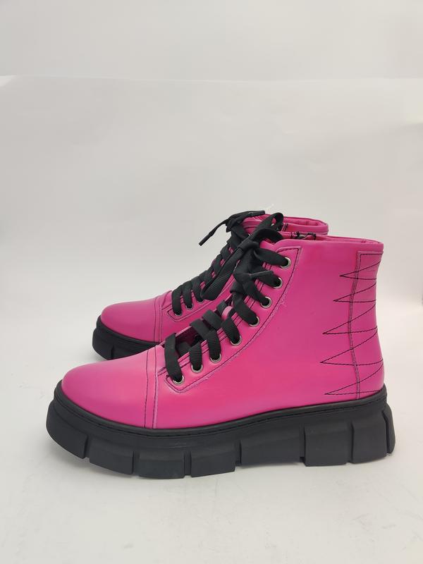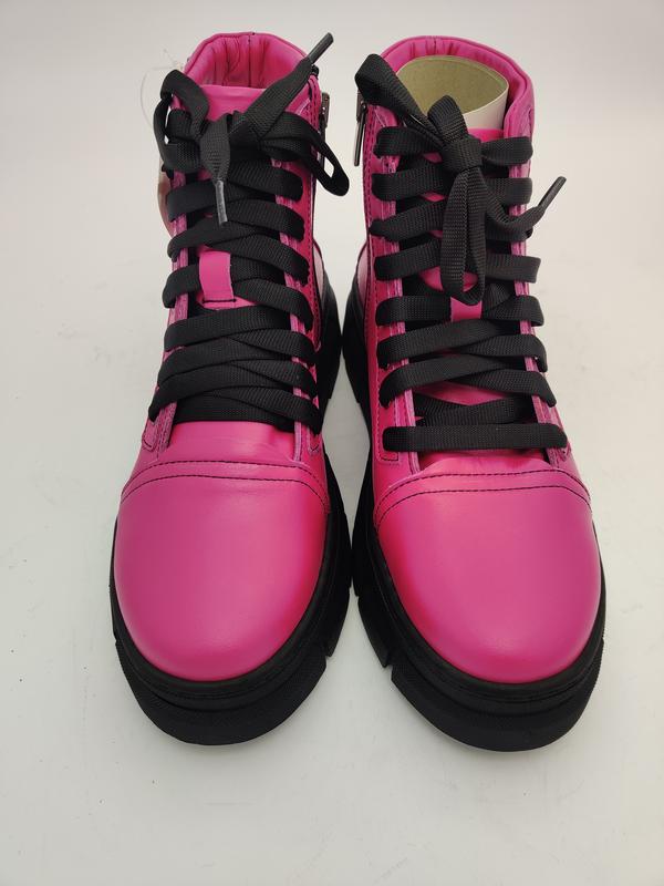 Модель виконана згідно з сучасними тенденціями, її колір - яскравий рожевий з чорною підошвою та шнурівкою - стане яскравим акцентом вашого осіннього образу.