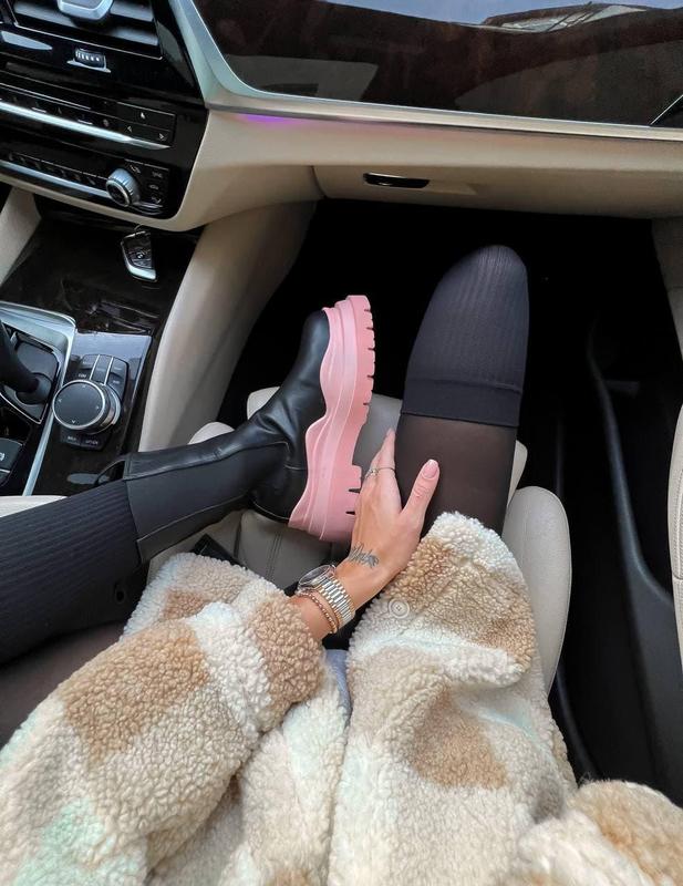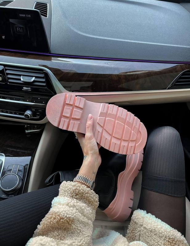 Нереально крутые женские зимние ботинки bottega veneta mini black/pink чёрные с розовым на меху