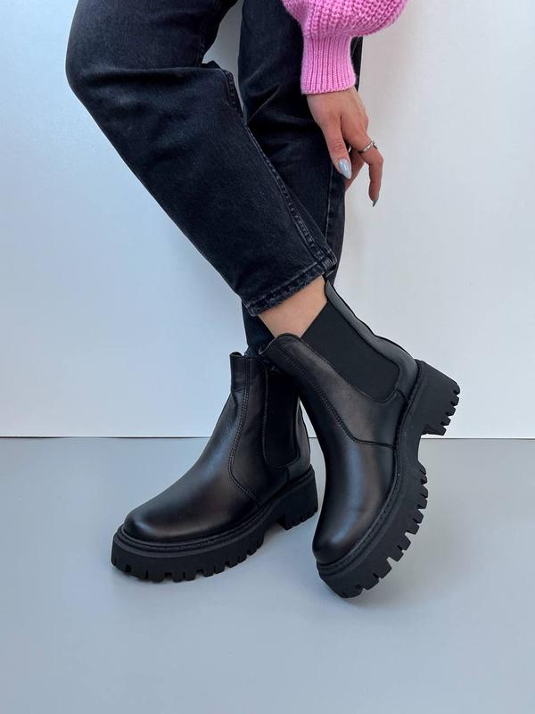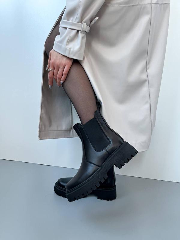 Код 4934Сезон - зимаКолір - чорний, бежевий Матеріал: натуральна шкіраВсередині натуральне набивне хутроВисота від п‘ятки 16 смВисота підошви 5 смВиробник Україна (Дніпро)