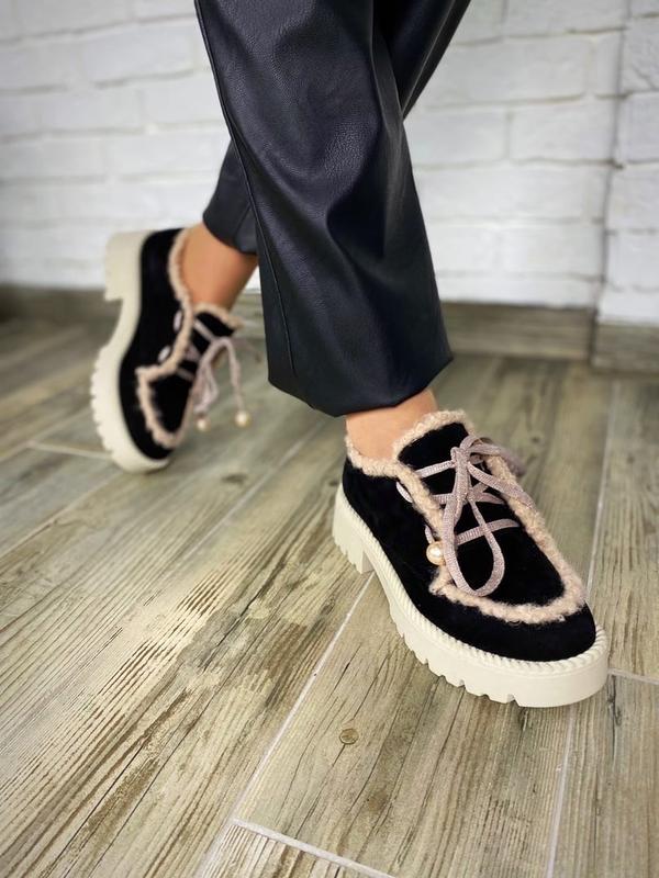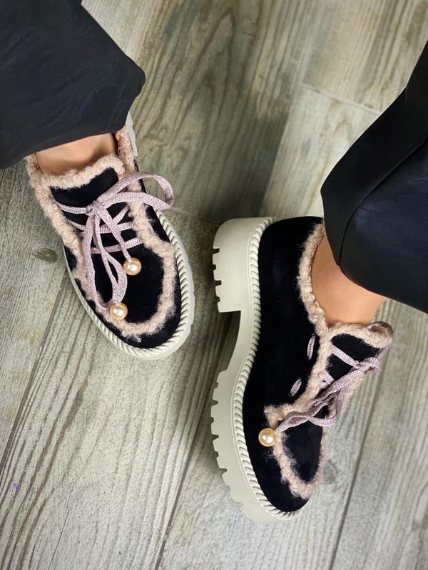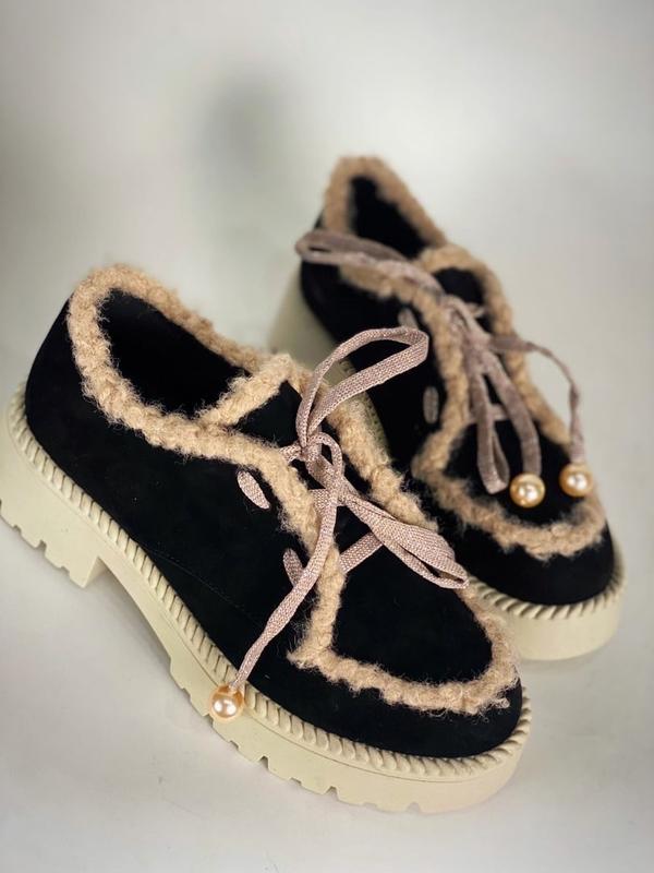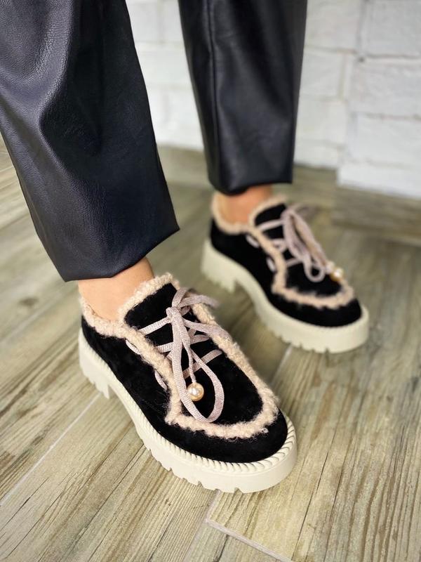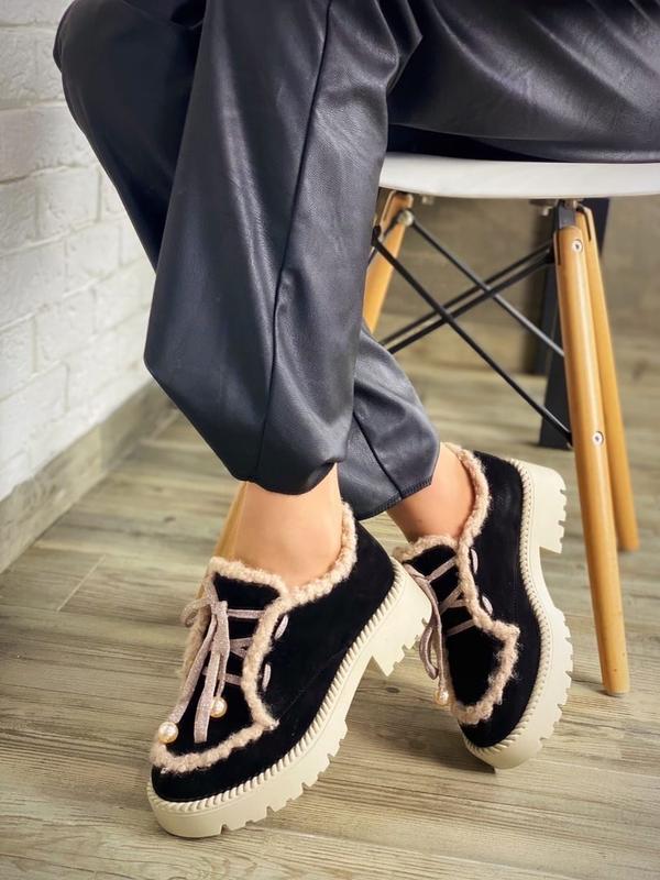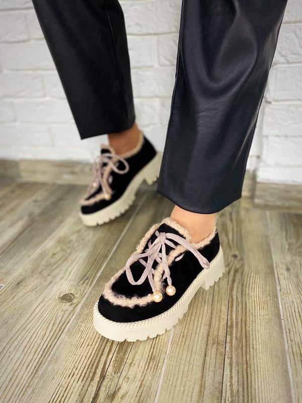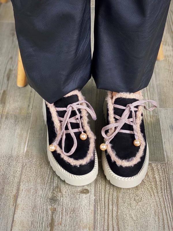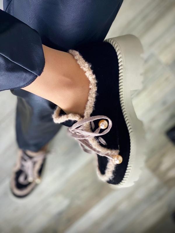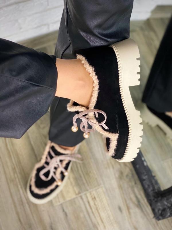 Круті черевикиНатуральна замша+овчина, всередині утеплені стриженою овчиною.Підошва спереду 2,5 см. позаду 4см.Розмірний ряд: 36-40Колір: чорний.Код 10096