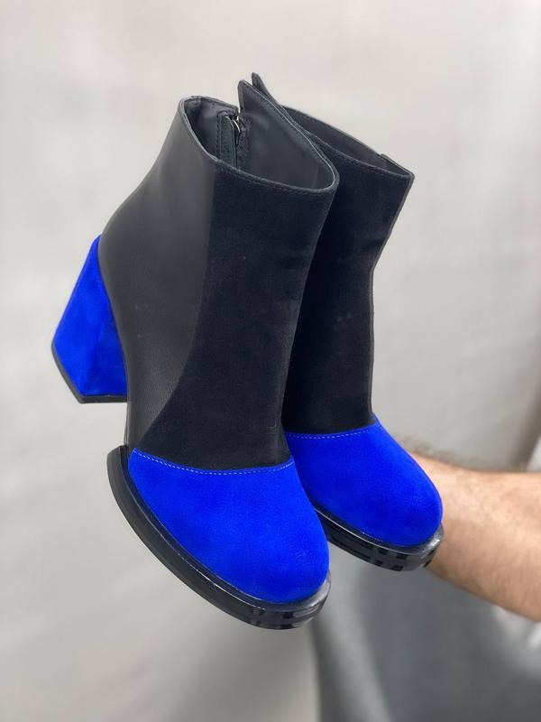 Эксклюзивные ботинки из итальянской кожи и замши женские на каблуке