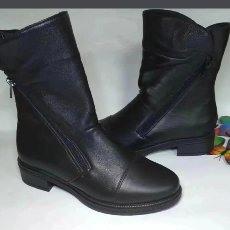 Ботинки зимние женские кожаные черные с молнией и пряжкой сверху 1616ц
