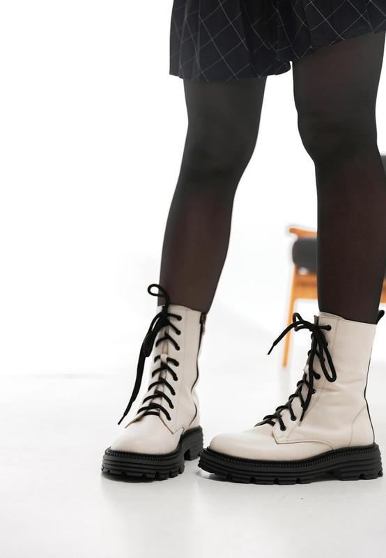 В наличии 36, 37, 38, 39, 40, 41 💥Женские светлые демисезонные ботинки с черной вставкой. Внутри подклад на байке. 💥Размерная сетка36-23.5 см 37-24 см 38-24.5 см 39-25 см 40-25.5 см 41-26 см