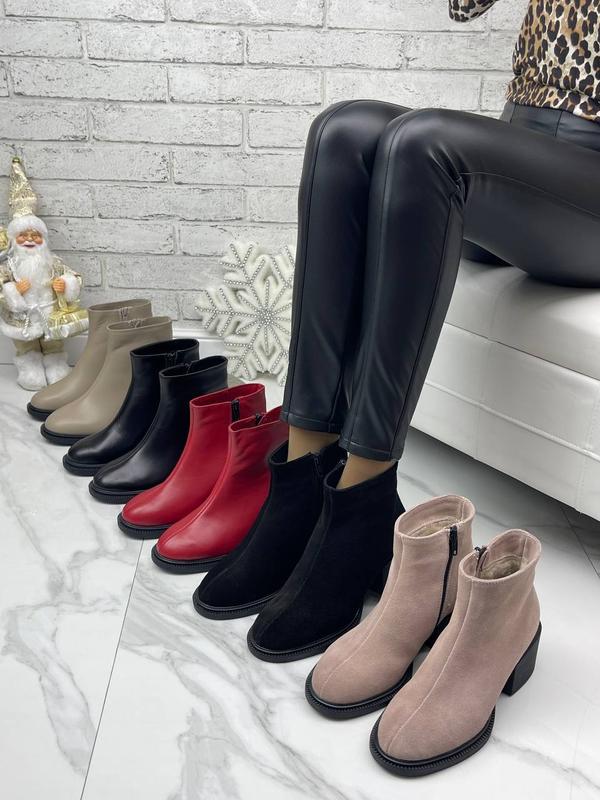 Сезон: Зима ❄️Материал: Натуральный замш\ кожаВысота ботинка: 12 см Высота подбора: 5,5 смРазмер : 36-41Артикул: красная кожа 19750Черная кожа 19753Черный замш 19752Пудра 19754Мокко 19755
