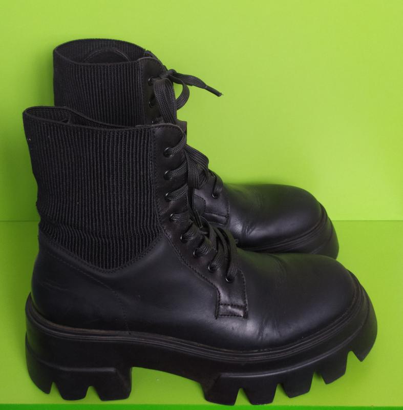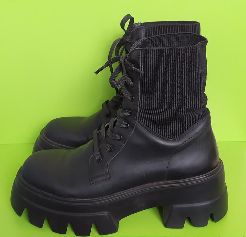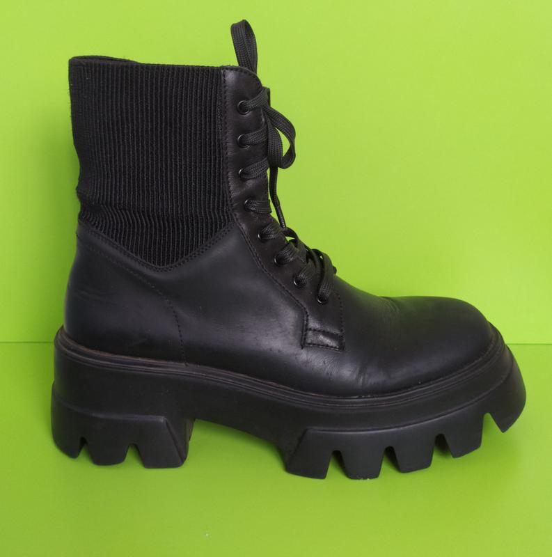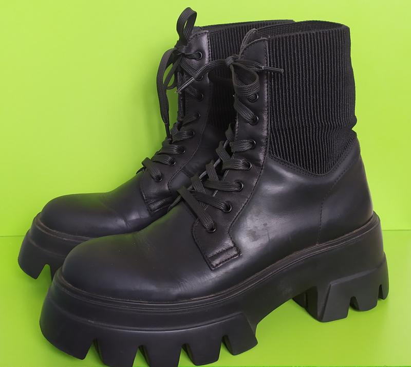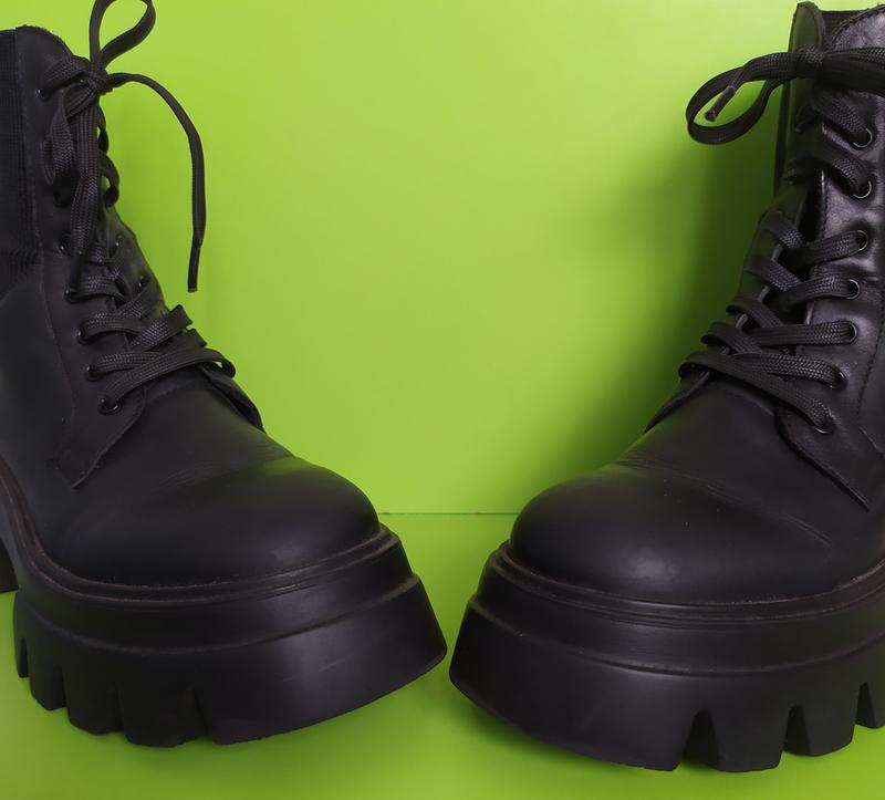 Кожаные чёрные ботинки на массивной подошве estro, 37