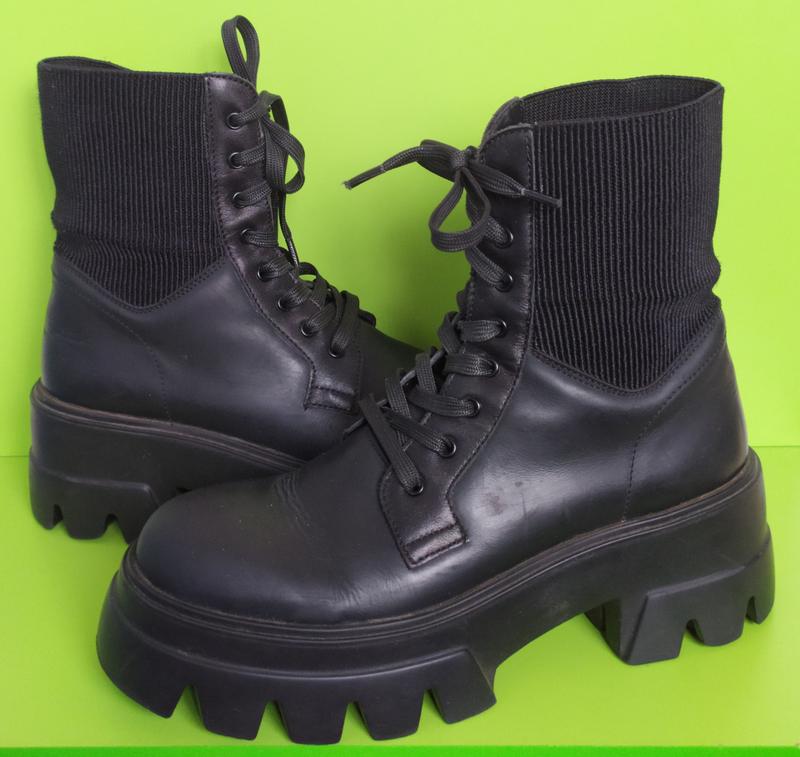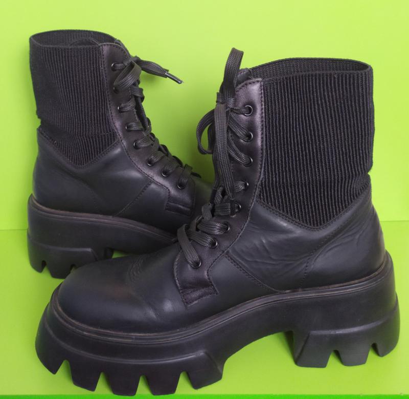 Кожаные чёрные ботинки на массивной подошве Estro, 37, стелька 24,8 см, ширина 7,8 см, каблук 6,3 см