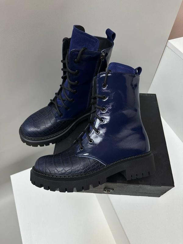 Комбинированные кожаные ботинки аллигатор лак кожа замш