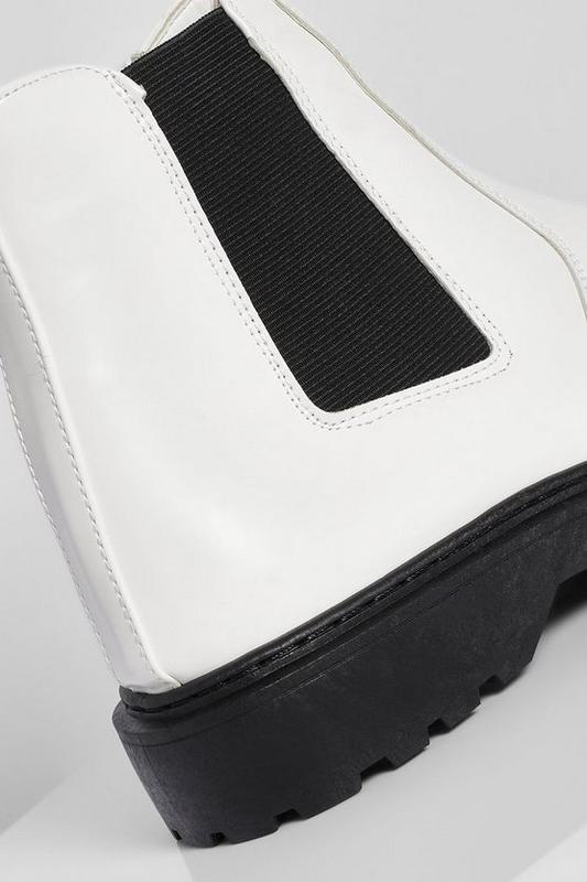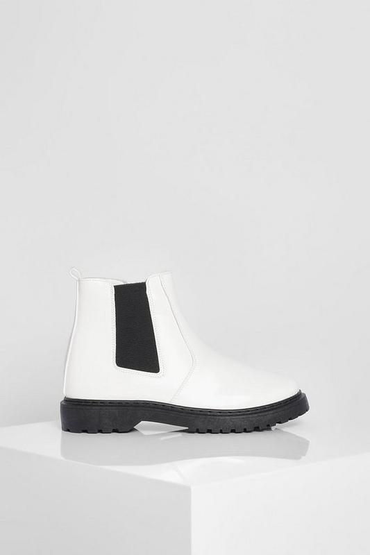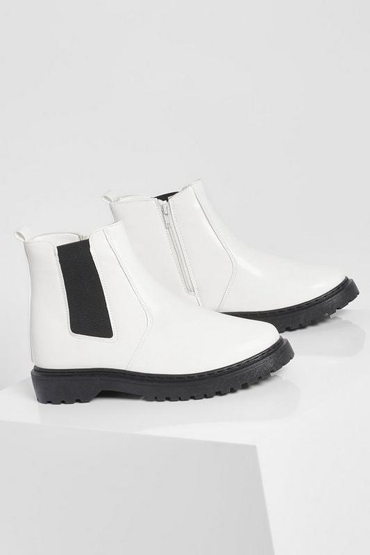 Массивные ботинки boohooБренд: boohoo;Цвет: белый;Размер: 36;Длина стельки: 22.5 см;Материал верха: лакированная искусственная кожа.