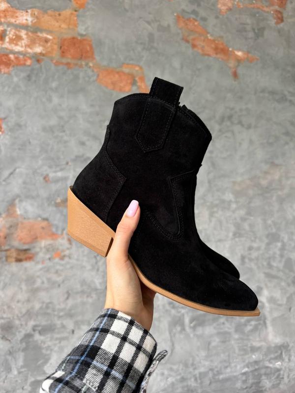 Казаки женские замшевые, демисезонные, натуральная замша, деми, ботинки, черные - бежевая...