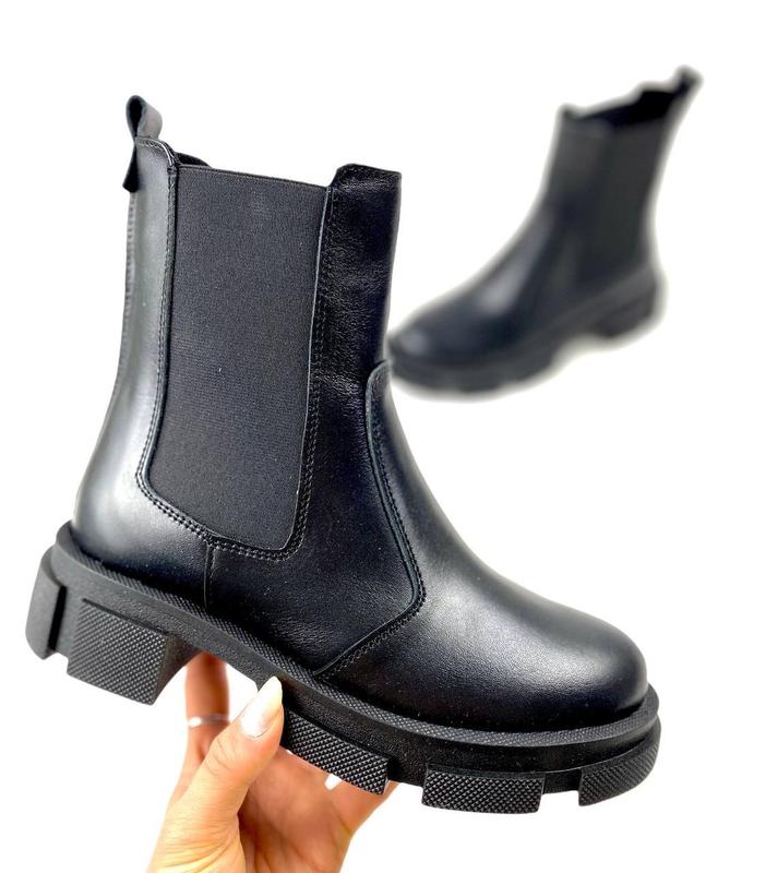 Демисезонные замшевые черные ботинки с пряжкой молния спереди