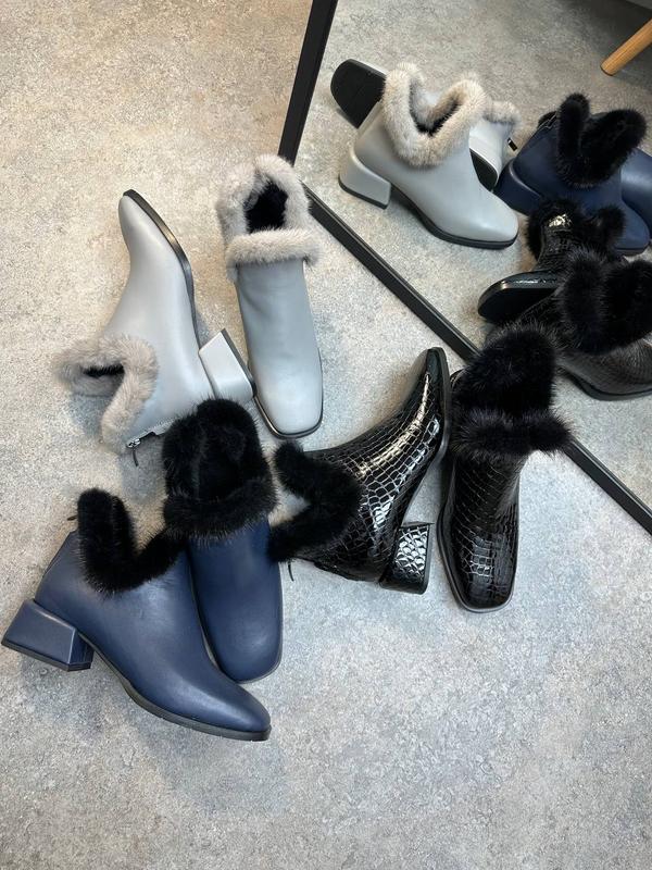 Ботинки ботильоны из итальянской кожи и замши женские с норкой
