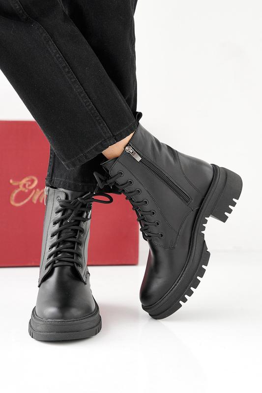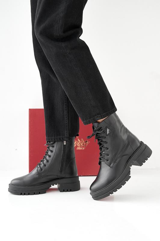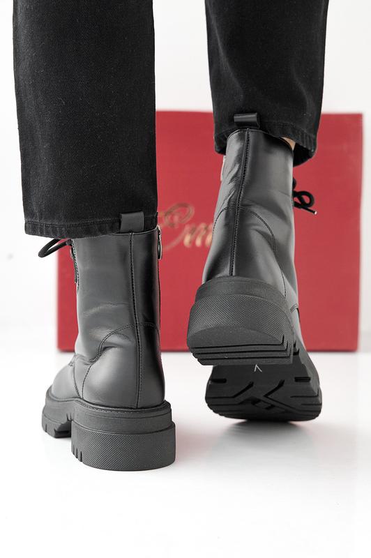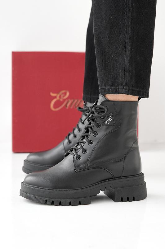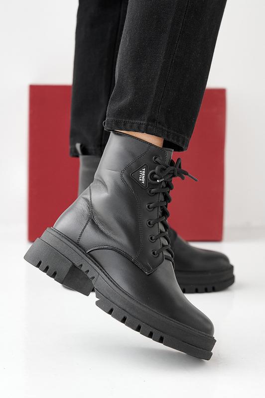 Женские зимние ботинки из натуральной кожи черного цвета.