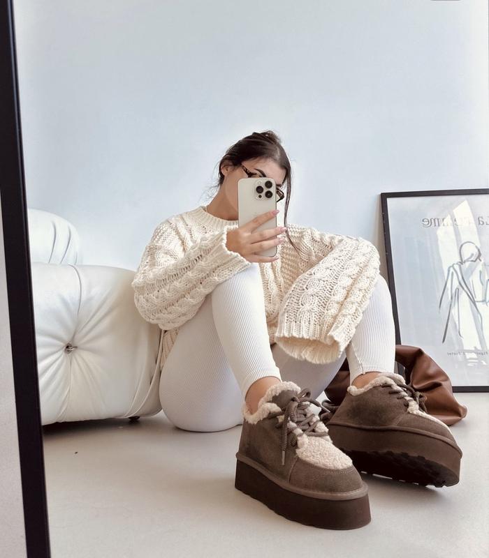 ▪️Для заказу пишіть в чат «написати продавцю» ▪️Наложка Нова Пошта по передоплаті 200 грн Матеріал: натуральна замша, утеплені хутром. Колір: коричневі. Сезонність: зима. На шнурівці. Код товару: 35196 ▪️Висота підошви спереду:4,5см; ззаду: 5,5см ▪️Висота від пʼяти: 9см