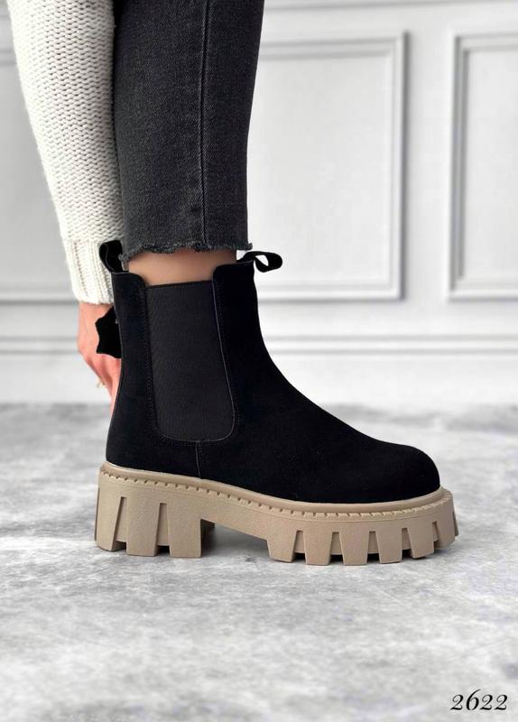 🕊🕊🕊Новинка 🕊🕊🕊 Код 2622 Ботинки челси Материал: НАТУРАЛЬНАЯ ЗАМШ Цвет: черный+беж Высота: 14,5 см Подошва: 4,5-6 см Внутри: густой мех Размер в размер 36-41 Производитель КНР 36-23,5 см 37-24 см 38-24,5 см 39-25 см 40-25,5 см 41-26 см