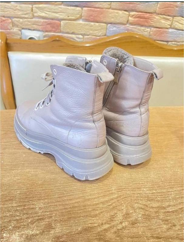 Зимние ботинки на платформе бежевого цвета