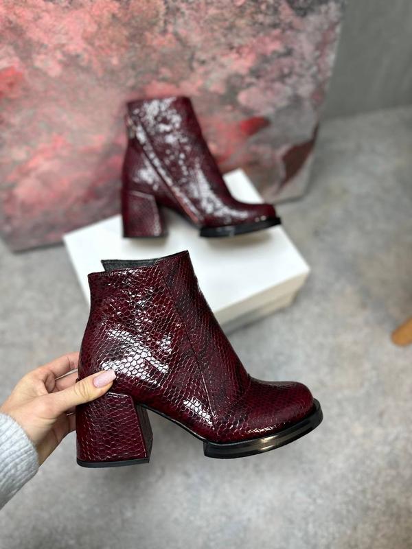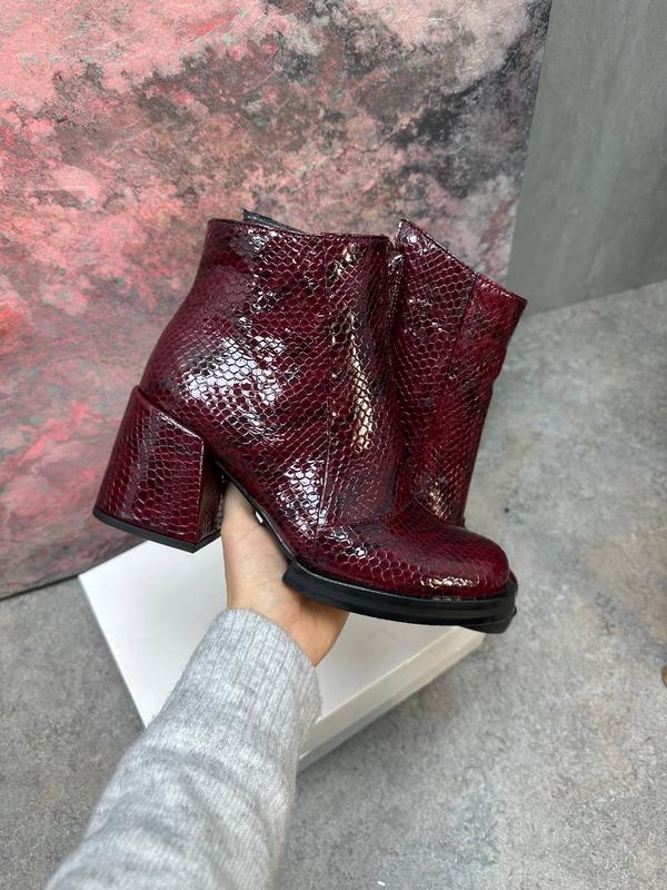 Женские лаковые ботинки из натуральной кожи бургунди 9001