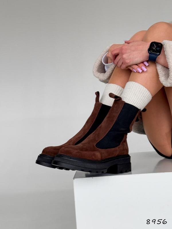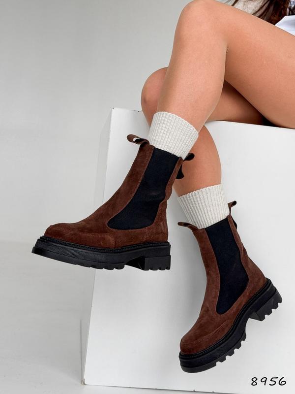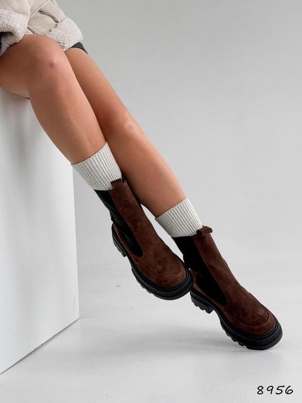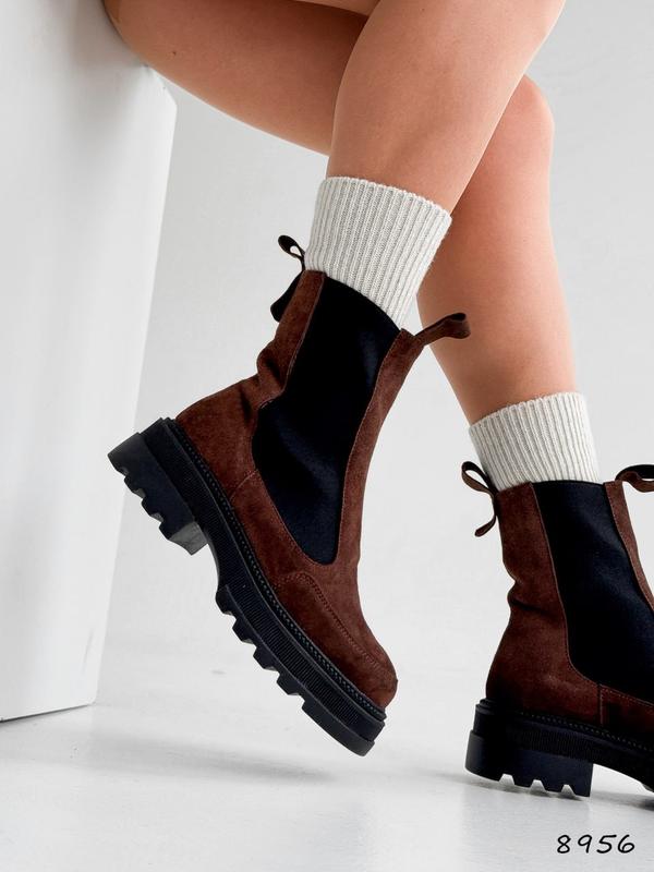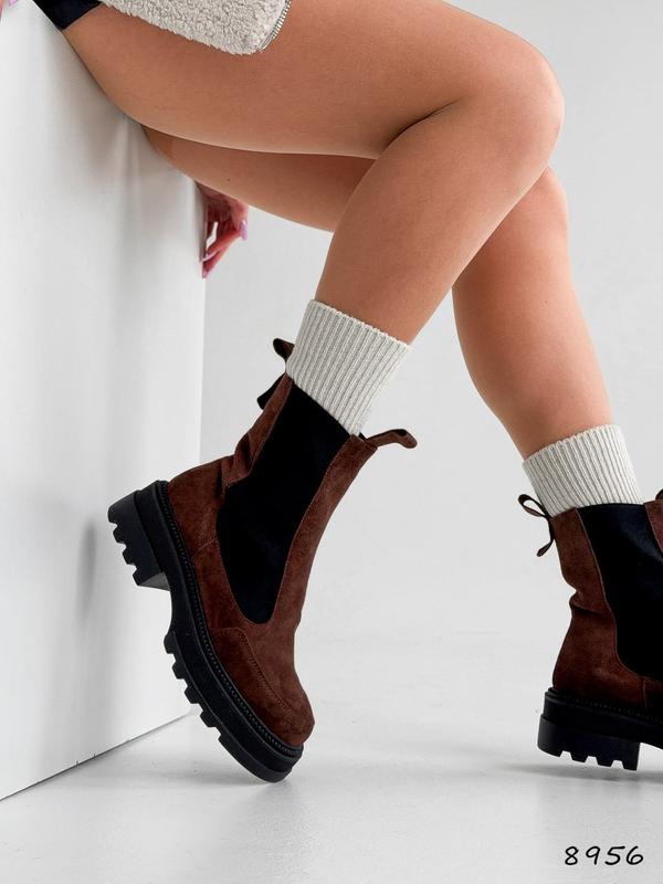 Ботинки женские Elen шоколадные, натуральная замша ЗИМА