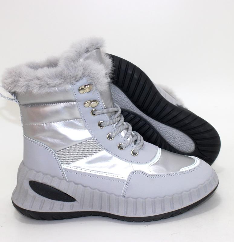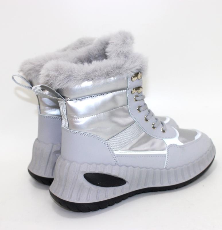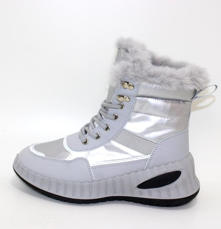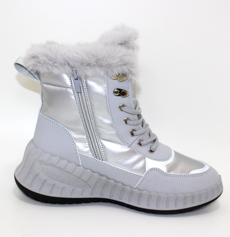 Женские зимние серебристые спортивные ботинки на шнурках 112807 (9305-7)